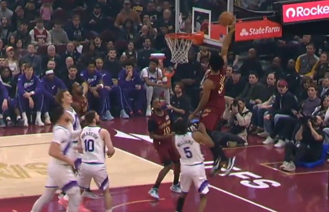 上来先扣一个!阿伦高高跃起抢断 随后快下接加兰抛传空接暴扣